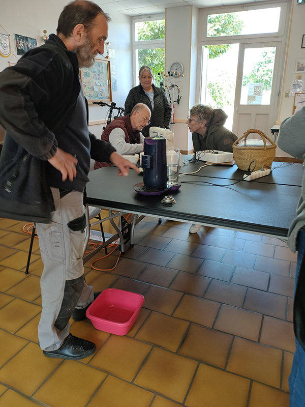 Le 1er après-midi réparation a eu lieu au mois de mai, nous étions 5 : Michèle et Françoise pour la couture, Florence pour l’aide en bureautique (informatique), Christophe et moi-même pour les réparations. Nous avons pu redonner vie à une cafetière Senseo, réparer une machine à coudre, une roue de vélo, réaliser un ourlet de pantalon, tout cela dans une bonne ambiance et dans un esprit de partage. Bien entendu, nous ne sommes pas des professionnels., nous ne garantissons pas la réparation… Nous prévoyons un deuxième après-midi au mois de novembre.