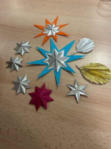 Ces objets ont été confectionnés par les adhérent(e)s du club d’arts plastiques de Chabottes, de la Fédération départementale de Générations Mouvement des Hautes-Alpes, avec des matériaux naturels. Pour les étoiles, des opercules de pots de yaourt ont été utilisés, composés d’une couche d’aluminium, ils sont très difficile à recycler.